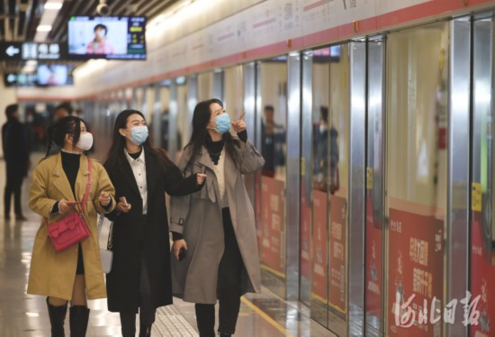 2021年2月19日,市民在石家莊地鐵北國商城站有序乘坐地鐵出行。河北日報記者史晟全攝