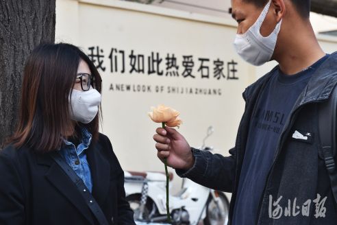 2021年10月30日,石市裕華區煤機街文化墻上演的浪漫一幕。河北日報記者趙杰攝