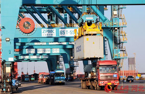 截至目前,滄州黃驊港綜合港區(qū)擁有外貿(mào)內(nèi)支線和內(nèi)貿(mào)航線24條,沿朔黃、太中銀、邯黃三大鐵路干線,建成和啟動(dòng)山西、石家莊、邢臺(tái)等7個(gè)內(nèi)陸港,腹地涵蓋冀中南和魯豫晉陜蒙等廣大地區(qū)。黃驊港正以全新的姿態(tài)走出渤海灣,走向更遠(yuǎn)的深藍(lán)。