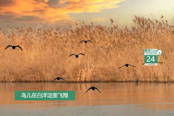今天是2022年1月24日,星期一,天氣多云,-6℃~4℃。在封面和大家見面的是白洋淀里飛翔的鳥兒。