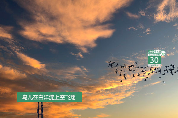 今天是2022年1月30日,星期日,陰轉小雪,-7℃~5℃。在封面和大家見面的是鳥兒在白洋淀上空飛翔的美景。