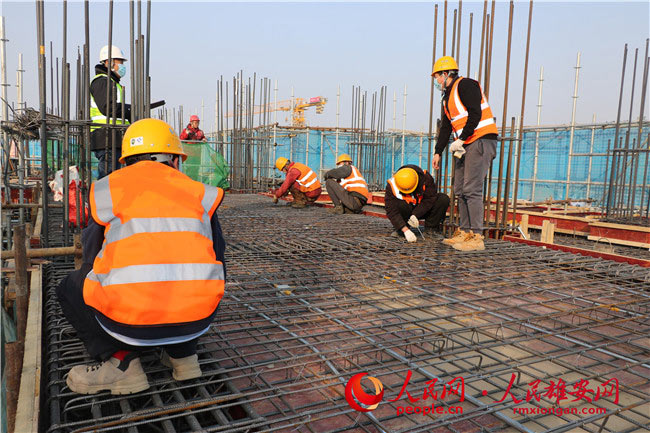 人民網雄安1月31日電 (李雪晴)春節前夕,在雄安新區中建六局承建的啟動區西北部初中項目施工現場,百余名工人正冒著嚴寒,分散在項目建設的各個區域,馬不停蹄地忙碌著。