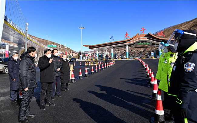 春節相逢冬奧,給崇禮這座塞外小城增添了別樣的色彩。王東峰深入到崇禮區太子城重點路段、關鍵部位,看望慰問一線工作人員,現場檢查指導疫情防控、交通安保、消防安全、電力保障、水源供給、酒店準備等重點工作。在京禮高速太子城檢查站,王東峰看望慰問執勤民警,向大家表示新春的祝福,叮囑大家嚴格落實交通管理政策,立足崗位、嚴防嚴守,確保交通高效、安全、順暢。在和平驛站交通救援點,王東峰聽取交通應急處置工作匯報,強調要完善工作方案和應急預案,超前準備、未雨綢繆,科學應對突發事件,確保安全萬無一失。在冬奧核心區地表水廠,王東峰看望慰問值班值守的武警官兵,代表省委、省政府,向大家表示節日問候和衷心感謝。在聽取水廠運營情況匯報時,王東峰強調,要把保水質安全、保水量供應作為重中之重,通過信息化手段,強化24小時巡查,保障飲用水安全穩定供應。在冬奧村消防救援站,王東峰實地察看救援裝備,看望慰問一線消防救援人員,強調要立足于防,全面排查消防安全隱患,建立健全責任制度,實行網格化管理,推動消防檢查常態化、制度化。一旦發生消防事故,要迅速行動、科學施救,防止發生次生災害。在冬奧運動員行車專用通道,王東峰詳細了解車輛通行情況,叮囑執勤干警要規范文明指揮,提升通行效率,同時要增強防護意識,保障自身安全。在太子城區域國家電網公司奧雪變電站,王東峰聽取冬奧供電服務保障和智慧指揮平臺建設情況匯報,強調要保障電力正常運行和穩定供應,為冬奧會順利舉辦提供有力能源支撐。同時要積極調整能源結構,大力推廣應用風電、光伏、氫能等新能源,為碳達峰、碳中和作出積極貢獻。在轉枝蓮檢查站,王東峰詳細了解檢查站運行情況,與工作人員互動交流,希望大家發揚不怕苦、不怕累的優良作風,健全交通、防疫、安保“三位一體”協調機制,構筑堅固的安全屏障,并叮囑有關負責同志關心關愛冬奧工作者的生活,做好飲食、保暖等服務工作。在國賓山莊,王東峰認真檢查酒店服務工作,強調要緊盯細節、精益求精,全力做好涉賽人員的服務保障,創造溫馨舒適環境。
