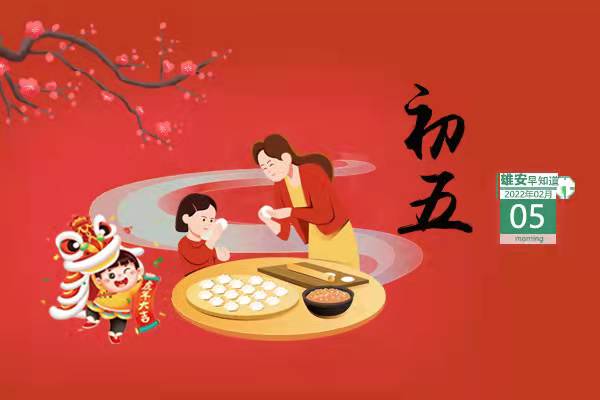 今天是2022年2月5日,星期六,天氣晴 ,-9~4℃。今天是正月初五,俗稱“破五”,過(guò)了這一天,民間諸多禁忌皆可破,是一個(gè)辟邪除災(zāi)、迎福納祥的節(jié)日。