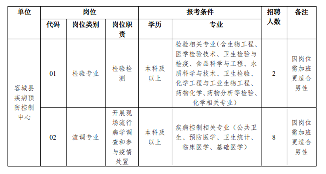 容城縣人力資源和社會保障局招聘疾病預(yù)防控制中心輔助人員公告