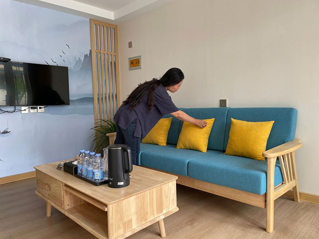 “我們村成立了8家村集體企業(yè),發(fā)展現(xiàn)代都市農(nóng)業(yè),開辟‘巾幗共享農(nóng)場(chǎng)’,138名婦女在家門口實(shí)現(xiàn)穩(wěn)定就業(yè)。”黃灣村黨支部書記劉秋亂說,黃灣村一條南北主街改造為民宿一條街,民宿由各家各戶的老宅子改建而成,村集體統(tǒng)一規(guī)劃,村民參與運(yùn)營(yíng)管理。