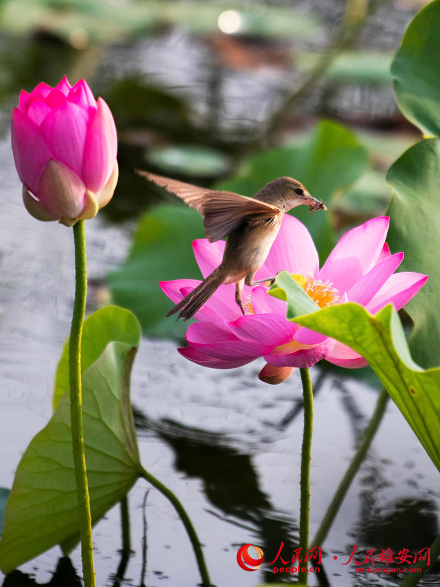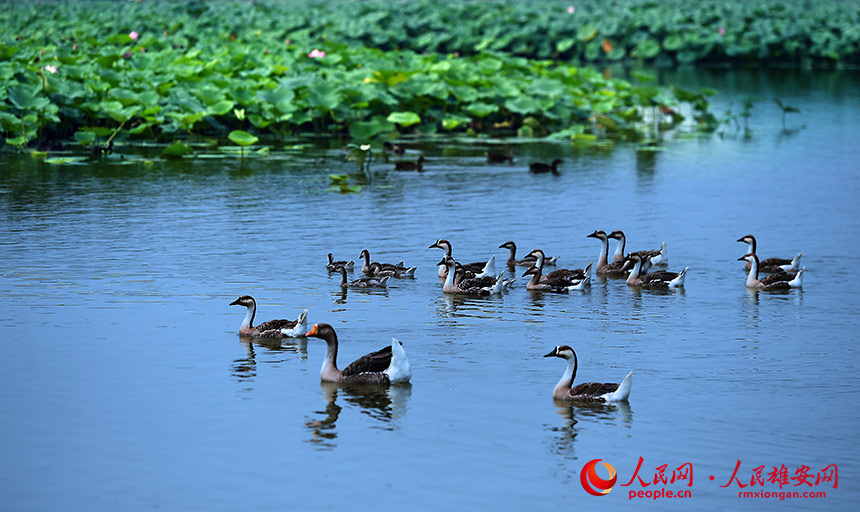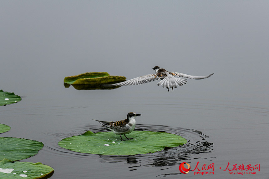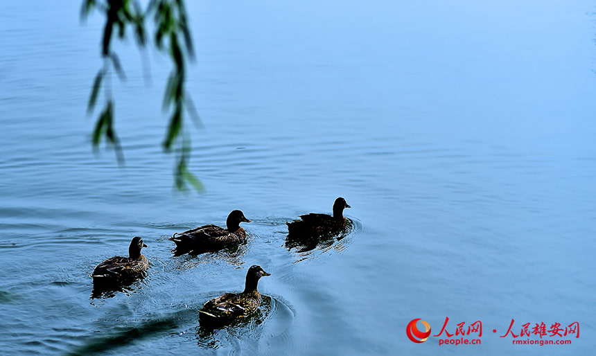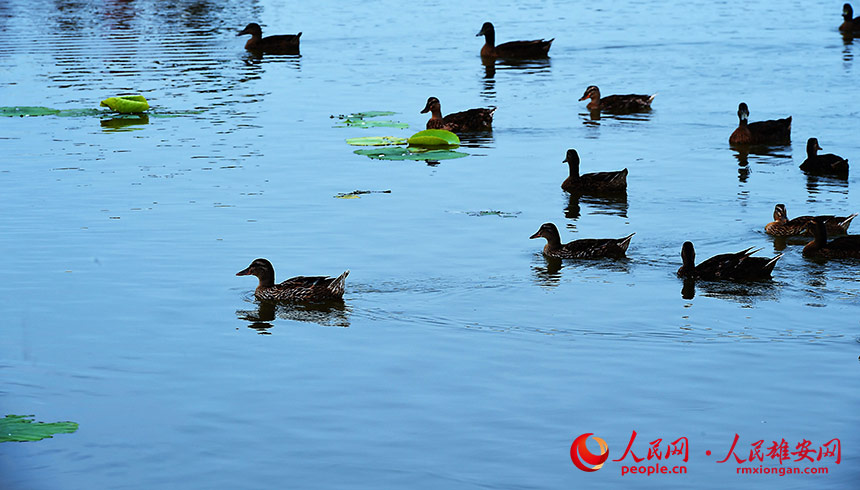 人民網雄安7月1日電 (何美萱)盛夏時節,雄安新區白洋淀天藍地綠,水碧岸青,令人心曠神怡。白洋淀優美的生態環境,讓生活在其中的鳥兒們也怡然自得。
