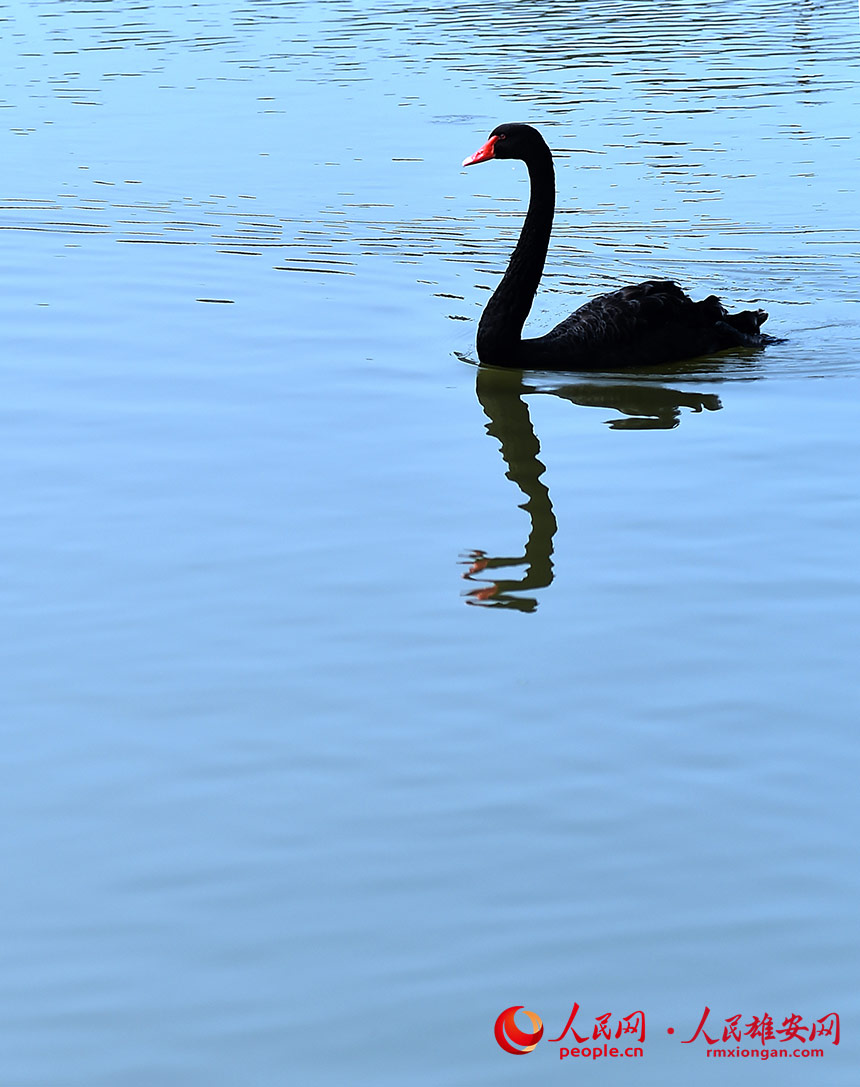 黑天鵝在水中游曳,碧波蕩漾。劉向陽攝