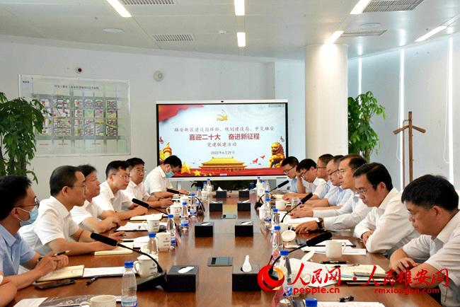 雄安新區(qū)建設(shè)指揮部黨支部、雄安新區(qū)規(guī)劃建設(shè)局黨總支、中交雄安黨工委6月29日聯(lián)合舉辦“喜迎二十大 奮進新征程”黨建聯(lián)建活動,重溫入黨誓詞,共上主題黨課。雄安新區(qū)建設(shè)指揮部黨支部、雄安新區(qū)規(guī)劃建設(shè)局黨總支、中交雄安黨工委還簽署了黨建聯(lián)建協(xié)議。