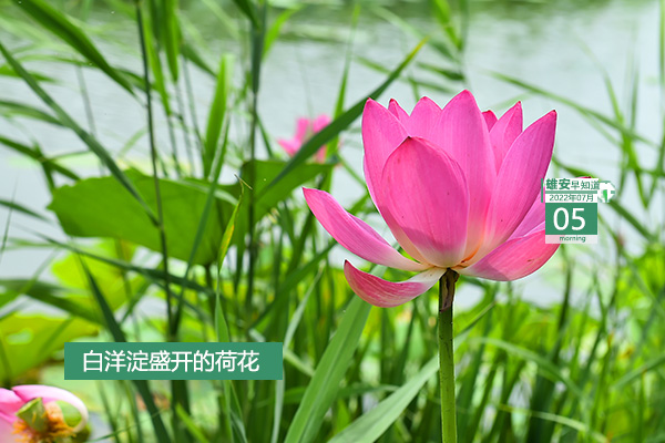 今天是2022年7月5日,星期二,天氣雷陣雨轉中雨 ,23~31℃。在封面和大家見面的是白洋淀盛開的荷花。