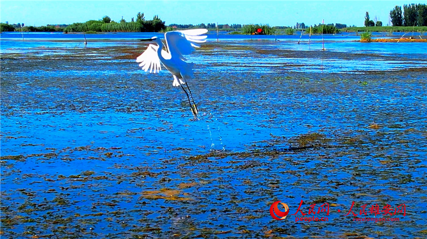 小白鷺在白洋淀凌空飛舞。高騰 攝