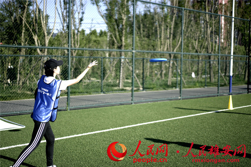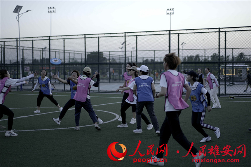 人民網雄安7月22日電(王紅)跳躍、投遞,飛盤在空中畫出拋物線;奔跑、飛撲,盤不落地永不放棄……7月21日晚,一場飛盤比賽在雄安新區安新縣大健康體育公園舉行。