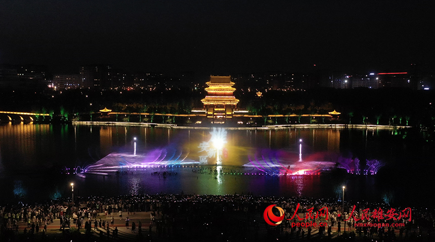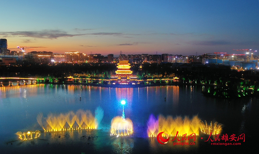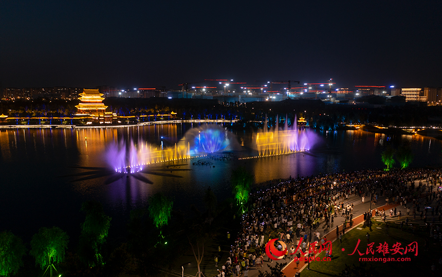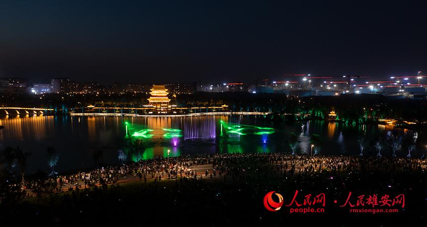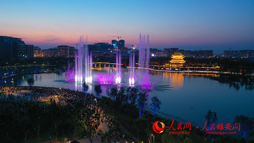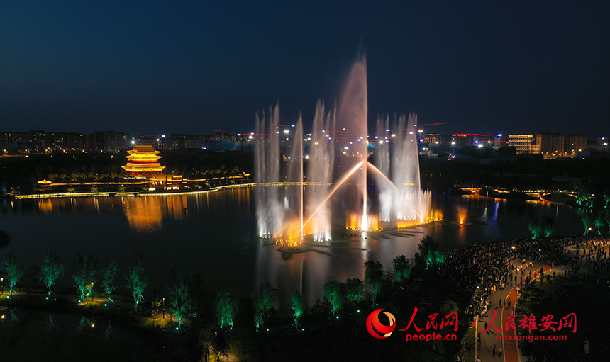 雄安金湖公園音樂噴泉秀現(xiàn)場圖。人民網(wǎng)?李兆民攝