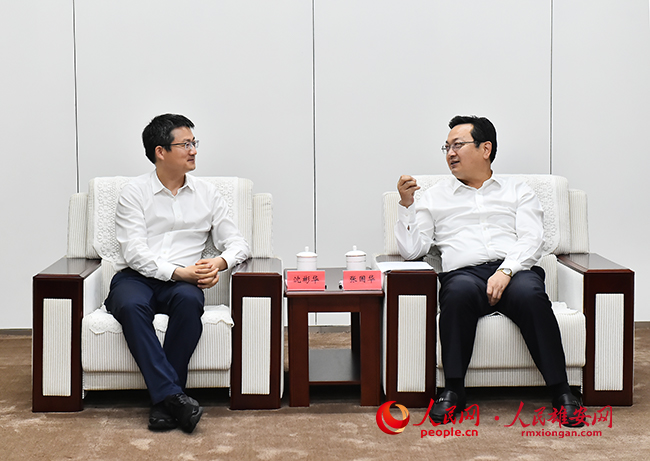 張國華首先代表雄安新區黨工委、管委會對沈彬華一行的到訪表示熱烈歡迎,對北京市委、市政府以及北京市發改委、協同辦給予雄安新區的大力支持表示誠摯感謝。他表示,雄安新區設立以來,北京市堅決貫徹落實習近平總書記重要指示精神和黨中央、國務院決策部署,堅決服從服務國家重大戰略,積極推動北京非首都功能疏解、交通基礎設施互聯互通、生態治理、公共服務水平提升等重點工作,組織動員一批優質醫療教育資源與新區開展結對幫扶,選派多批次優秀干部到新區各條線掛職,給予新區規劃建設發展全方位支持。特別是北京市援建的“三校一院”交鑰匙工程中的幼兒園、小學、中學項目陸續建成交付,將助力提升新區公共服務水平,為新區承接北京非首都功能創造良好條件。希望北京市繼續關心支持新區建設發展,讓先進的辦學理念和優質的醫療服務帶動新區整體公共服務水平持續提升,共同推動國家重大戰略落地落實、開花結果。