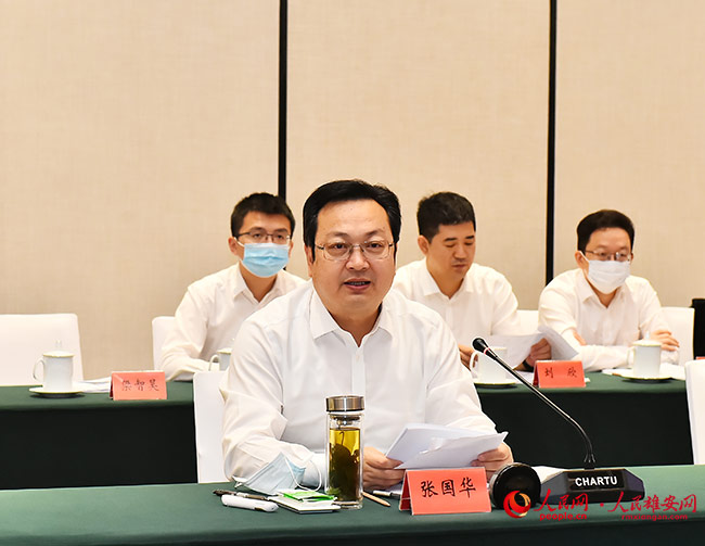 張國華首先代表雄安新區黨工委、管委會對各家企業的到訪和長期以來對新區的關注和支持表示衷心感謝。他表示,近年來,新區黨工委管委會認真貫徹落實黨中央、國務院決策部署和省委、省政府工作安排,牢牢把握北京非首都功能疏解集中承載地這一首要定位,圍繞創造“雄安質量”、建設“廉潔雄安”和打造新時代高質量發展的全國樣板,高標準高質量推動新區建設發展取得重要成效。“1+4+26”規劃體系、“1+5+22+100”的城市空間格局、“1+N”政策體系等頂層設計基本形成,承接疏解有序推進,首批疏解項目全面落位,重點片區和重大項目加快建設,“三個層次”片區開發建設同步推進、融合發展,生態環境質量穩中向好,“一淀、三帶、九片、多廊”生態空間格局初具雛形,教育、醫療、養老等公共服務設施不斷完善,新區的綜合承載能力、聚集吸引能力、自我發展能力全面增強,為雄安新區長遠發展奠定了堅實基礎。