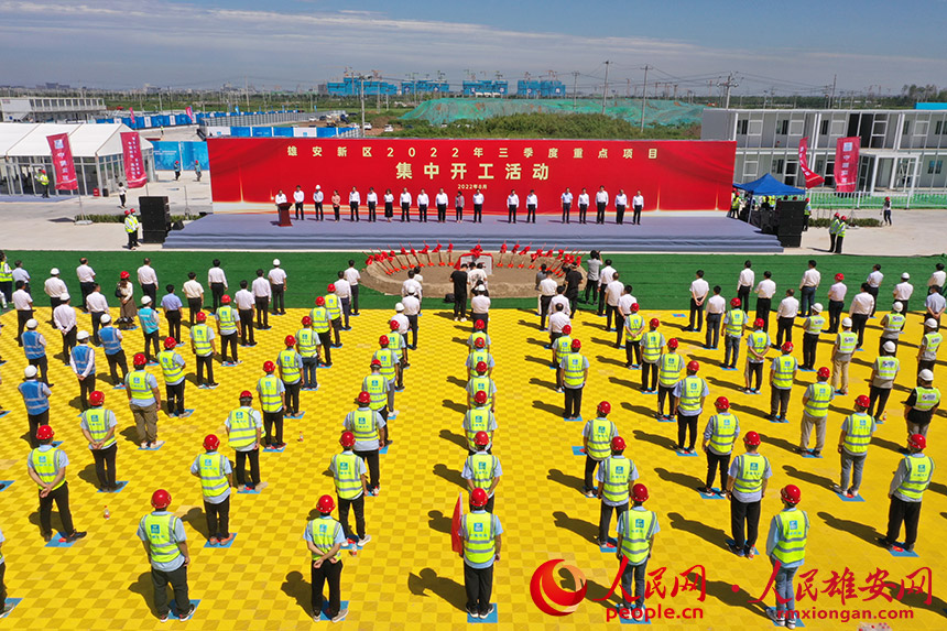 人民網雄安8月19日電 (王紅) 雄安新區2022年三季度重點項目集中開工活動19日在雄安新區啟動區雄安國貿中心舉行,此次集中開工項目共46個,總投資達到430億元,涵蓋了城市綜合開發、公共服務、基礎設施、生態建設等項目。