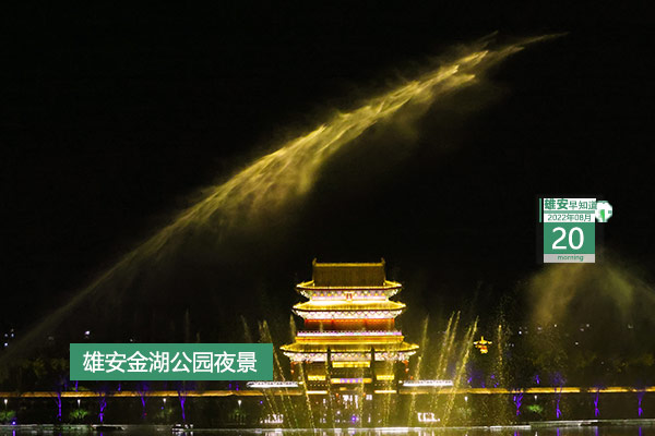 今天是2022年8月20日,星期六,天氣晴,22℃~30℃。在封面和大家見面的是雄安金湖公園夜景。