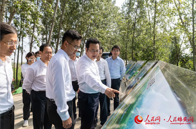 張國華調(diào)研白洋淀生態(tài)環(huán)境治理保護和啟動區(qū)中央綠谷建設(shè)情況。中國雄安官網(wǎng)高盟攝