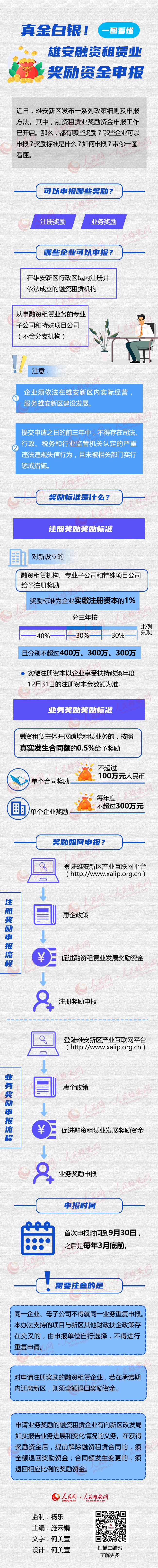 人民網雄安8月25日電 近日,雄安新區發布一系列政策細則及申報方法。其中,融資租賃業獎勵資金申報工作已開啟。那么,都有哪些獎勵?哪些企業可以申報?獎勵標準是什么?如何申報?帶你一圖看懂。