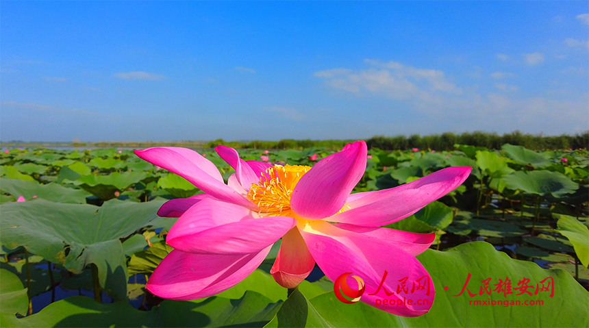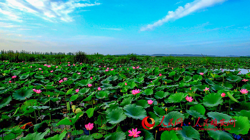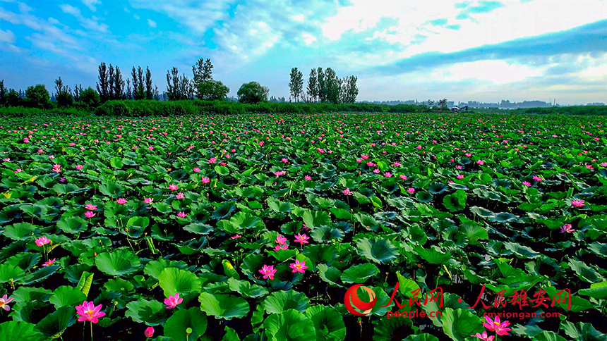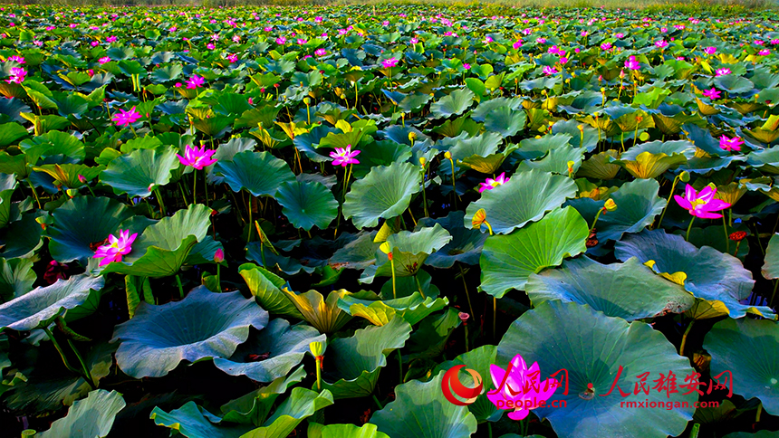 人民網雄安8月26日電 雄安新區白洋淀歷史上曾以“白洋月夜”“棗林晚渡”“長堤煙柳”“十里荷香”“水月桃花”“金沙落照”等六大名景著稱于世。每逢夏季,白洋淀里野生荷花漸次盛開,綿延十余里,香氣撲鼻,成為一道靚麗風景線。徜徉花海深處,宛如置身畫中,使人如癡如醉,流連忘返。