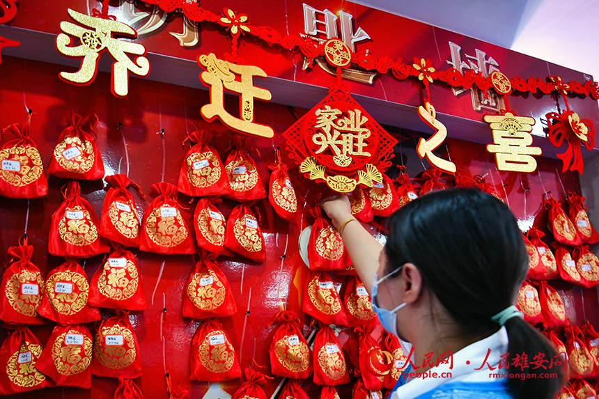 雄東安置房交付現場,工作人員正在“鑰匙墻”上取鑰匙。人民網 宋燁文攝