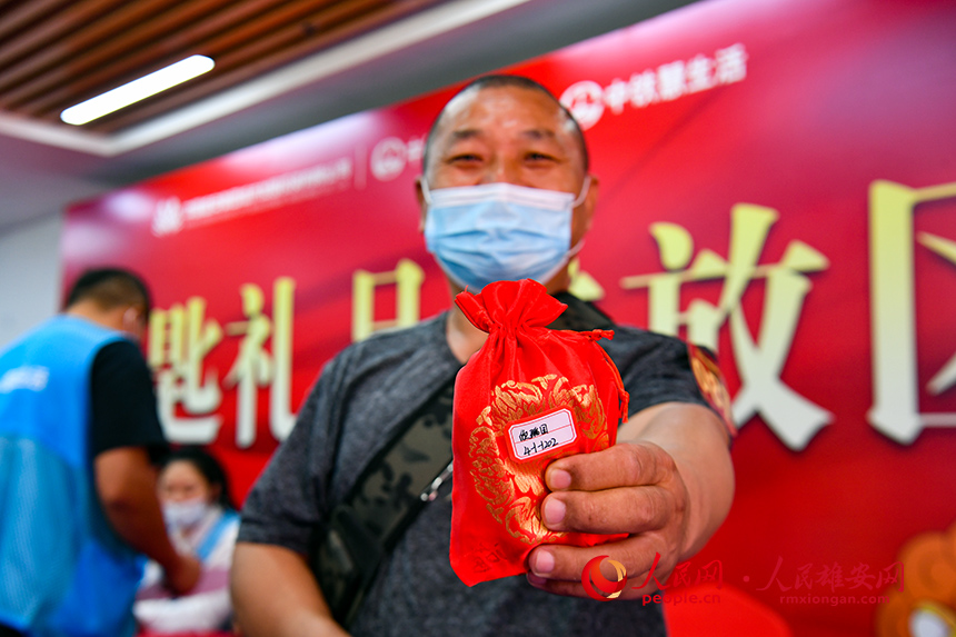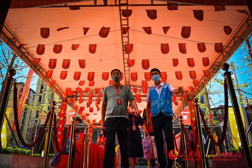 工作人員引導回遷居民進入交付點。人民網 宋燁文攝