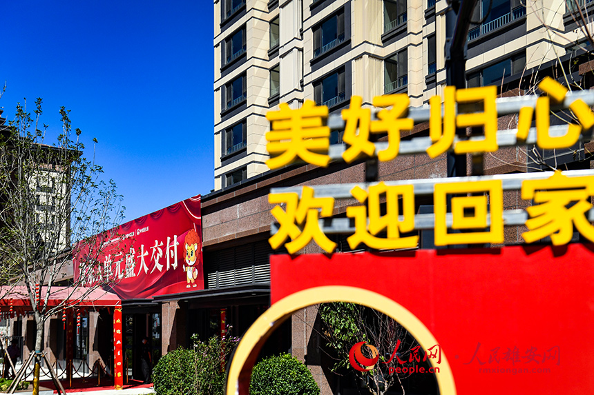 第六交付點外擺放著“歡迎回家”的標識。人民網 宋燁文攝