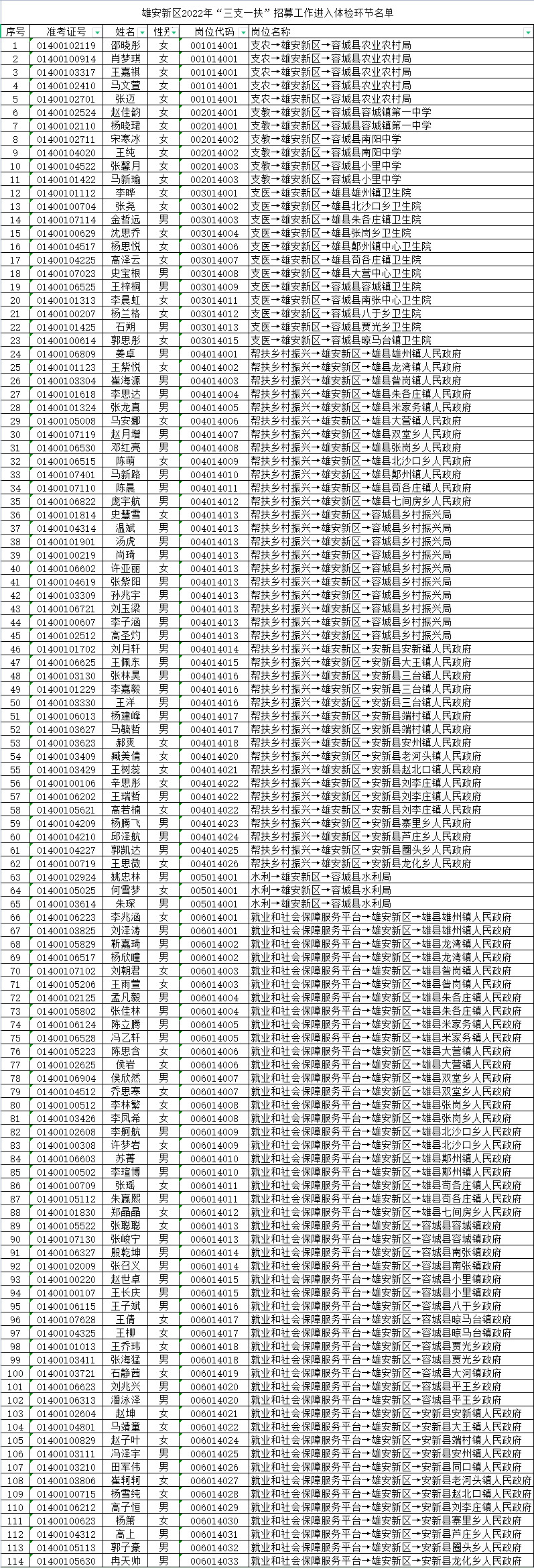 附件:雄安新區(qū)2022年“三支一扶”招募工作進(jìn)入體檢環(huán)節(jié)名單