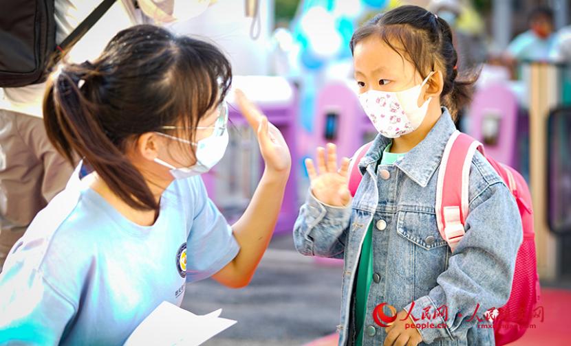 9月1日開學第一天,雄安容和悅容幼兒園為小朋友們檢查身體。人民網 楊華龍攝