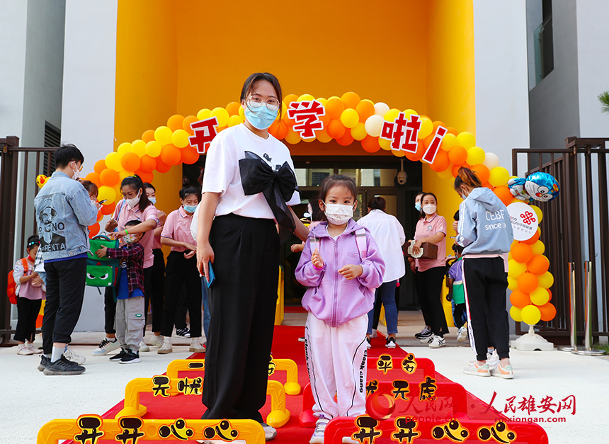 9月1日開學第一天,雄安容和悅容幼兒園小朋友開心入園。人民網 李雪晴攝