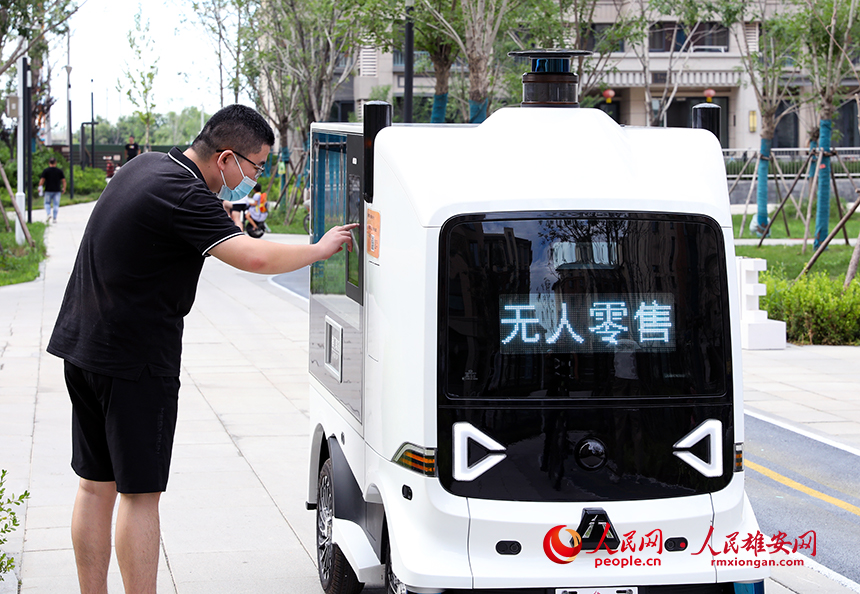 雄安容東片區的無人零售車。人民網?宋燁文攝