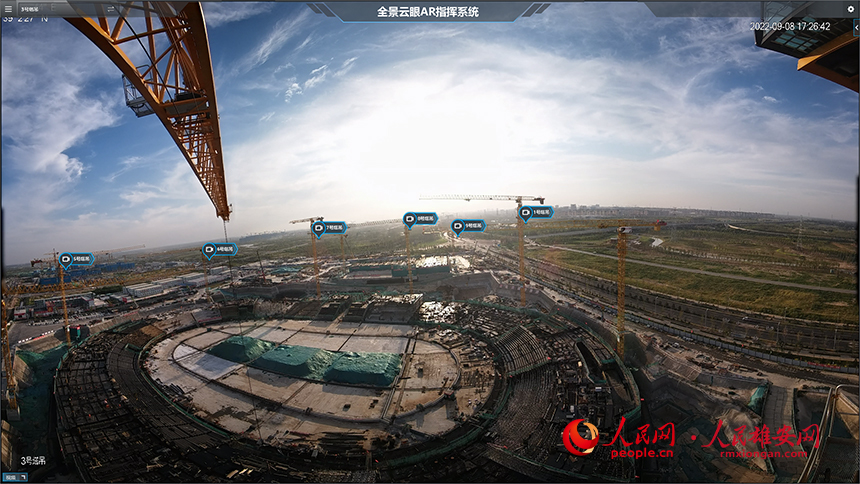 建筑工地全景云眼AR智慧系統截圖。北京城建供圖