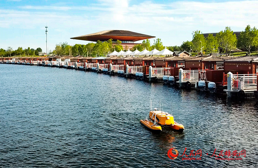 搭載5G、VR技術的無人船正在白洋淀進行監測。人民網?宋燁文攝