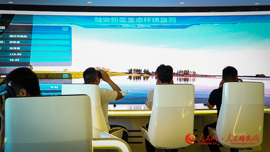 雄安生態環境監控中心內,5G+VR,第一視角監測水域變化。這是國內首次將5G技術全方位應用于生態環境領域。人民網?楊華龍攝