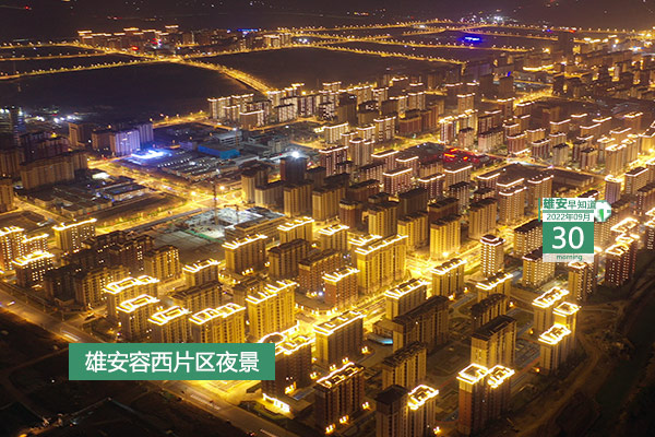 今天是2022年9月30日,星期五,天氣晴轉多云,19℃~32℃。在封面和大家見面的是雄安容西片區夜景。