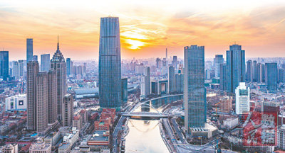 海河干流橫貫天津市區,見證城市變遷。圖為夕陽照射下的城市風貌,美如畫卷。王瀟珩攝(人民視覺)
