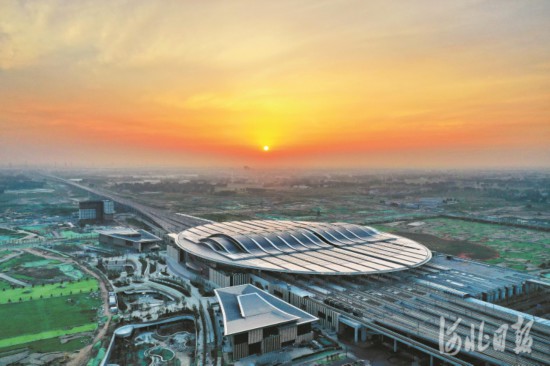 京雄城際鐵路雄安站,一座綠色、智慧、現代的高鐵站,外形恰似一顆巨型的“青蓮露珠”。