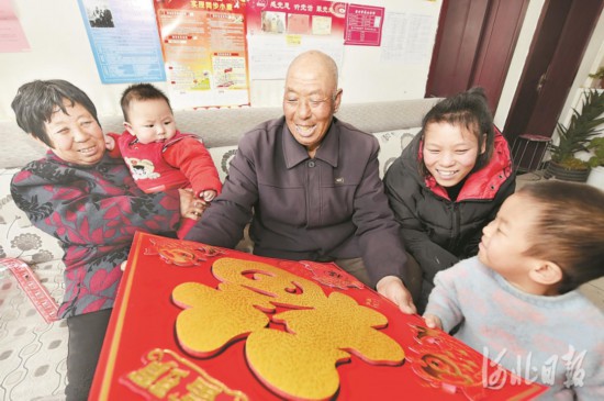 阜平縣顧家臺村,顧成虎(中)一家人臉上寫滿了幸福。河北日報記者趙海江攝