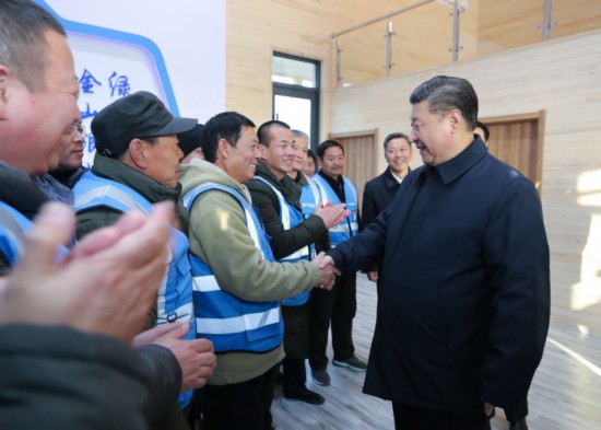 2019年1月16日,中共中央總書記、國家主席、中央軍委主席習近平在河北雄安新區考察調研。這是習近平在河北雄安新區“千年秀林”大清河片林一區造林區域秀林驛站,同當地護林員代表親切交流。新華社記者鞠鵬攝