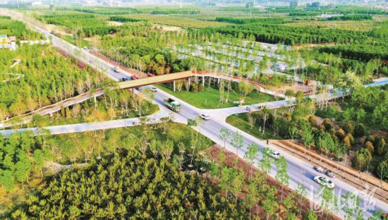 “華北明珠”碧波萬頃,飛鳥翔集;“千年秀林”草木葳蕤,綠意盎然;建設工地塔吊林立,工程車輛穿梭繁忙……
