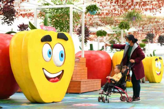 參觀者在河北省石家莊市正定縣塔元莊村“智慧農場”研學區觀賞。 新華社發(陳其保攝)