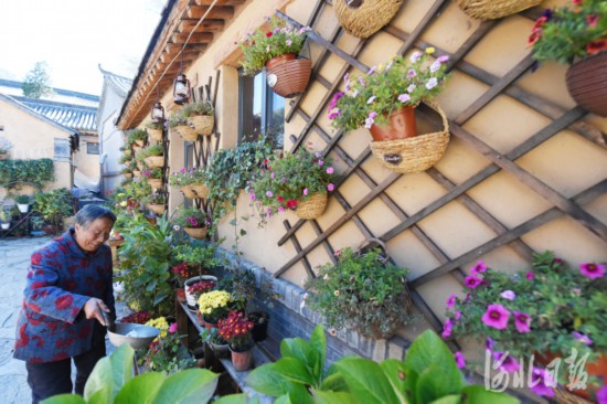 在保定市阜平縣駱駝灣村,唐宗秀在家中小院里澆花。 河北日報記者史晟全攝