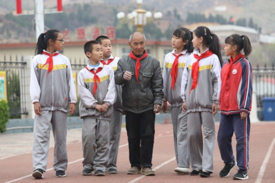 閆青海(中)給孩子們講奮斗創業的故事。 新華社發
