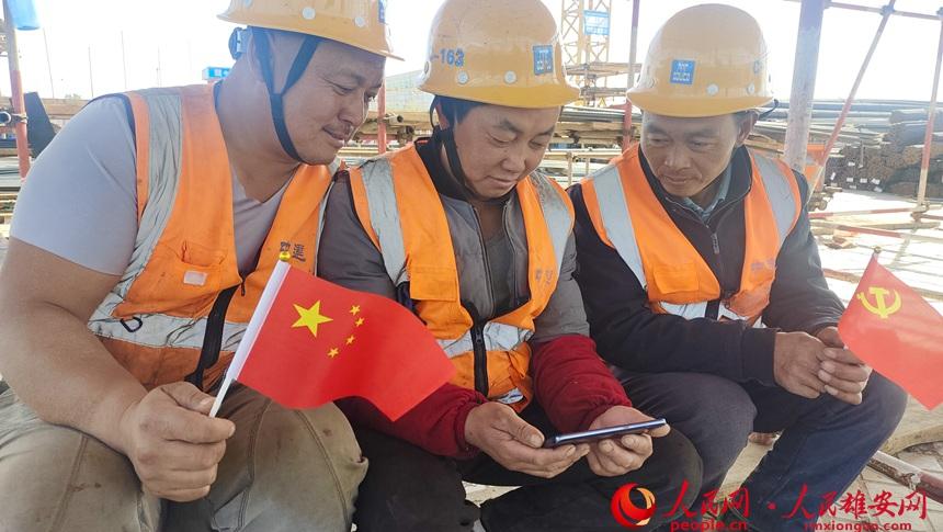 雄安建設者收看中國共產黨第二十次全國代表大會開幕會。中建三局供圖