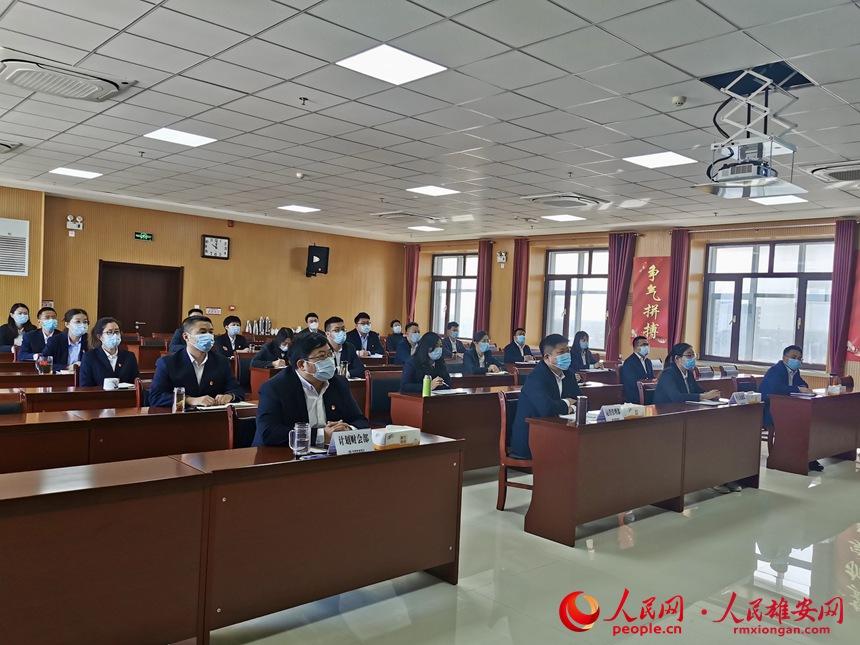 中國農(nóng)業(yè)銀行河北雄安分行組織收看中國共產(chǎn)黨第二十次全國代表大會開幕會。農(nóng)行河北雄安分行供圖