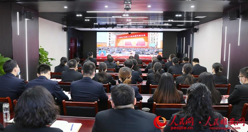 河北雄安新區中級人民法院組織收看中國共產黨第二十次全國代表大會開幕會。雄安中院供圖