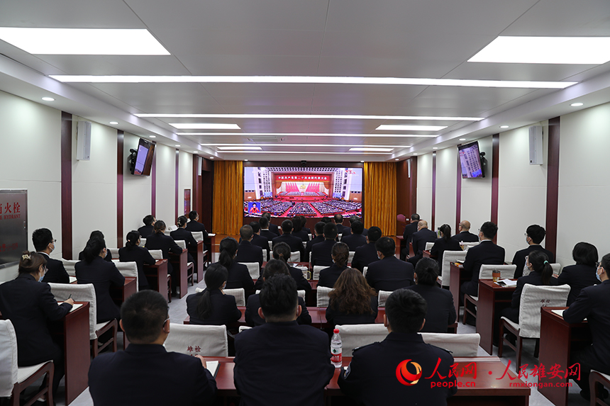 河北省人民檢察院雄安新區分院組織收看中國共產黨第二十次全國代表大會開幕會。雄安檢察分院供圖