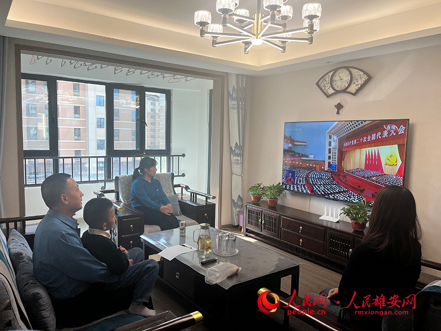 雄安新區第一個集中建成區容東片區回遷居民在新家收看中國共產黨第二十次全國代表大會開幕會。容東管委會供圖