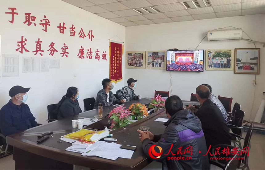 雄縣朱各莊鎮大謝村黨員收看中國共產黨第二十次全國代表大會開幕會。朱各莊鎮政府供圖