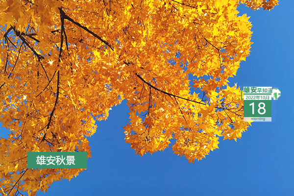 今天是2022年10月18日,星期二,天氣晴,3℃~18℃。在封面和大家見面的是雄安秋景。